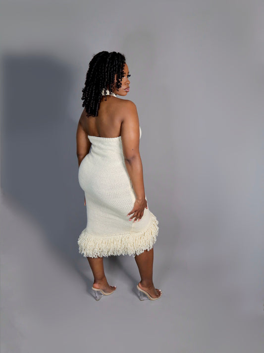 White Fringe Braided Dress